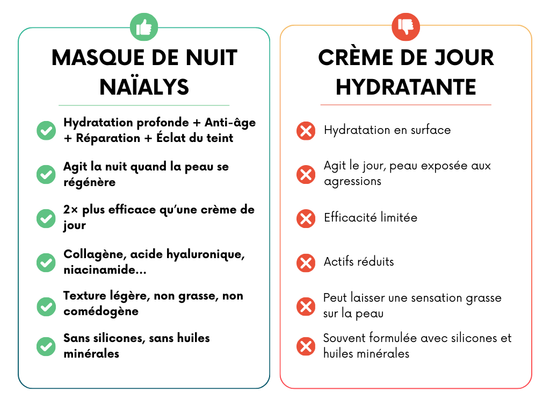 Grâce au masque de nuit Naïalys, vous aurez une peau visiblement transformée au réveil, pour un soin premium, à un coût réduit.